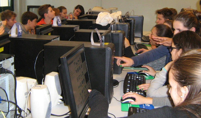 • Momento collettivo: interosservazione guidata della struttura del software, delle risorse a disposizione, delle operazioni base descritte nel dettaglio sui passaggi da eseguire. A disposizione anche una mini guida cartacea semplificata. Sono presenti due adulti facilitatori cui rivolgersi.